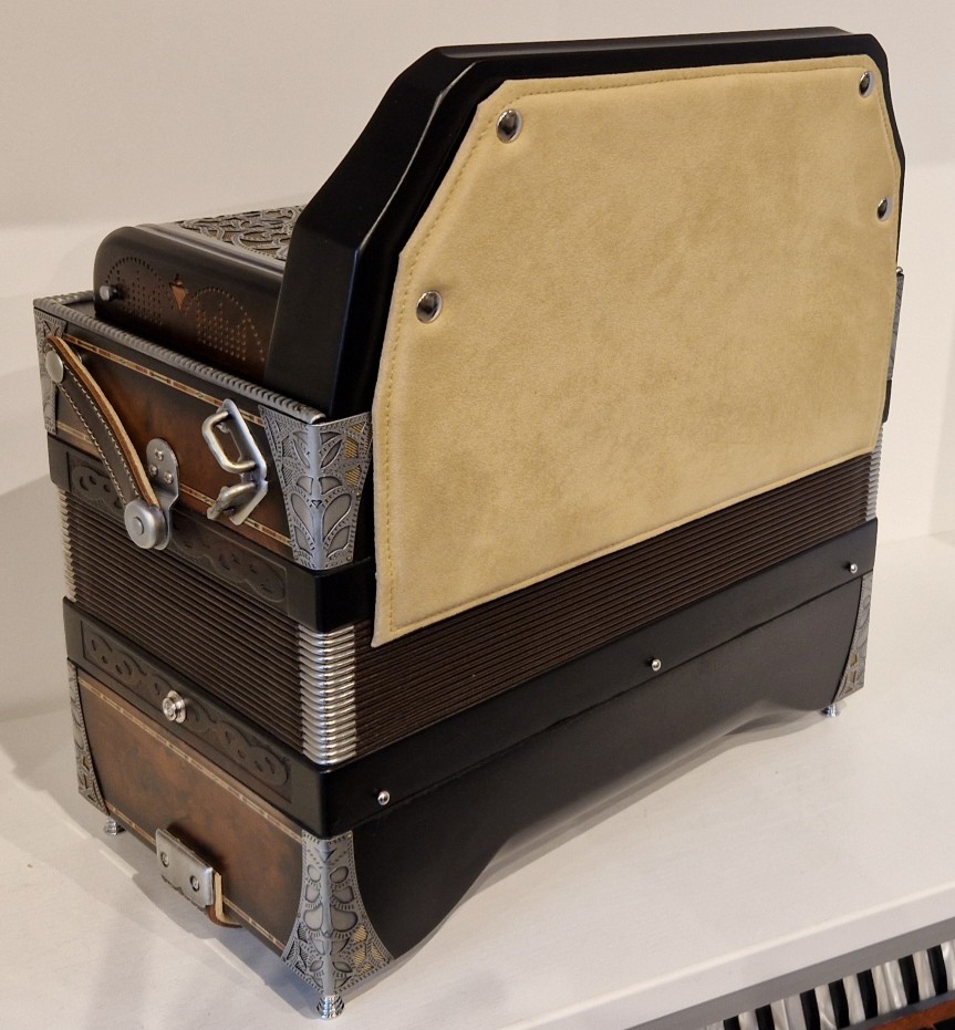 Sehr edle Optik & sehr hochwertige Verarbeitung zeichnen dieses Instrument aus. A-Mano Stimmplatte sorgen für minimalen Luftverbrauch und eine wunderbare Ansprache. Die Bassseite ist mit 8 zweichörigen Bässen ausgestattet.