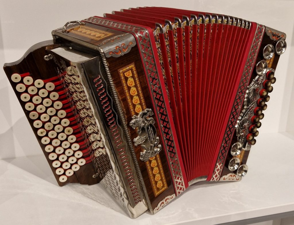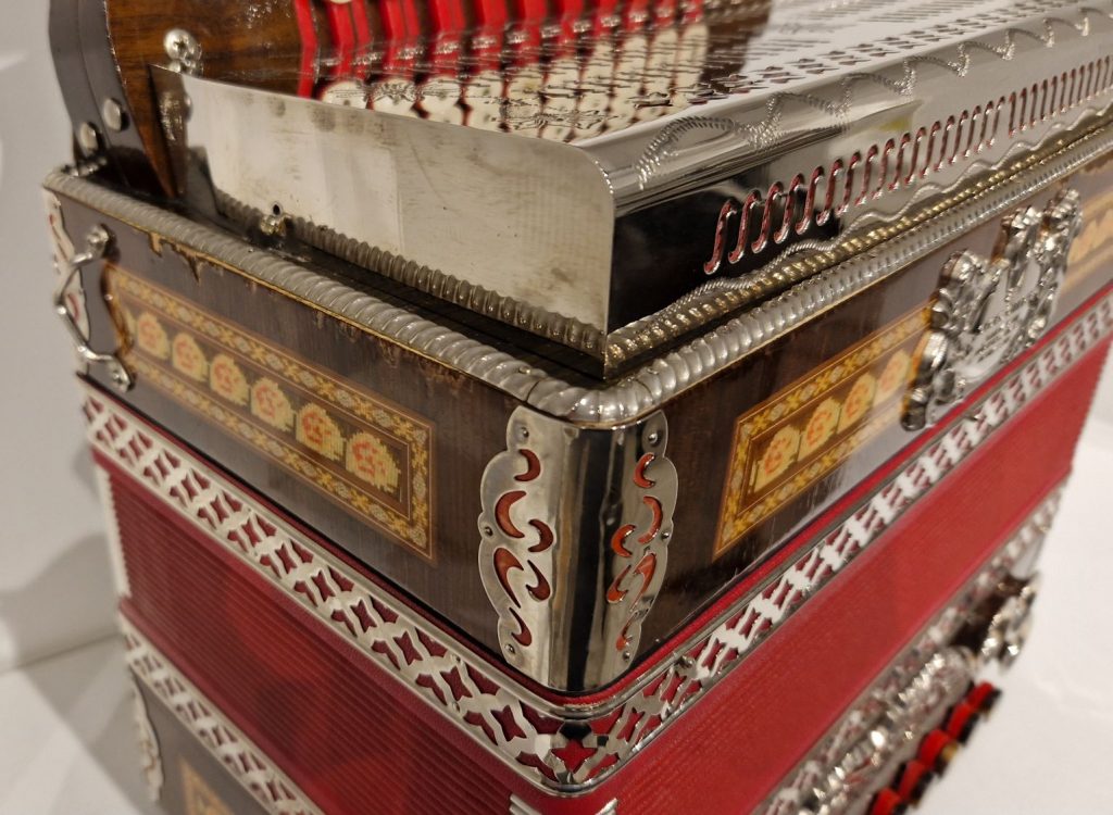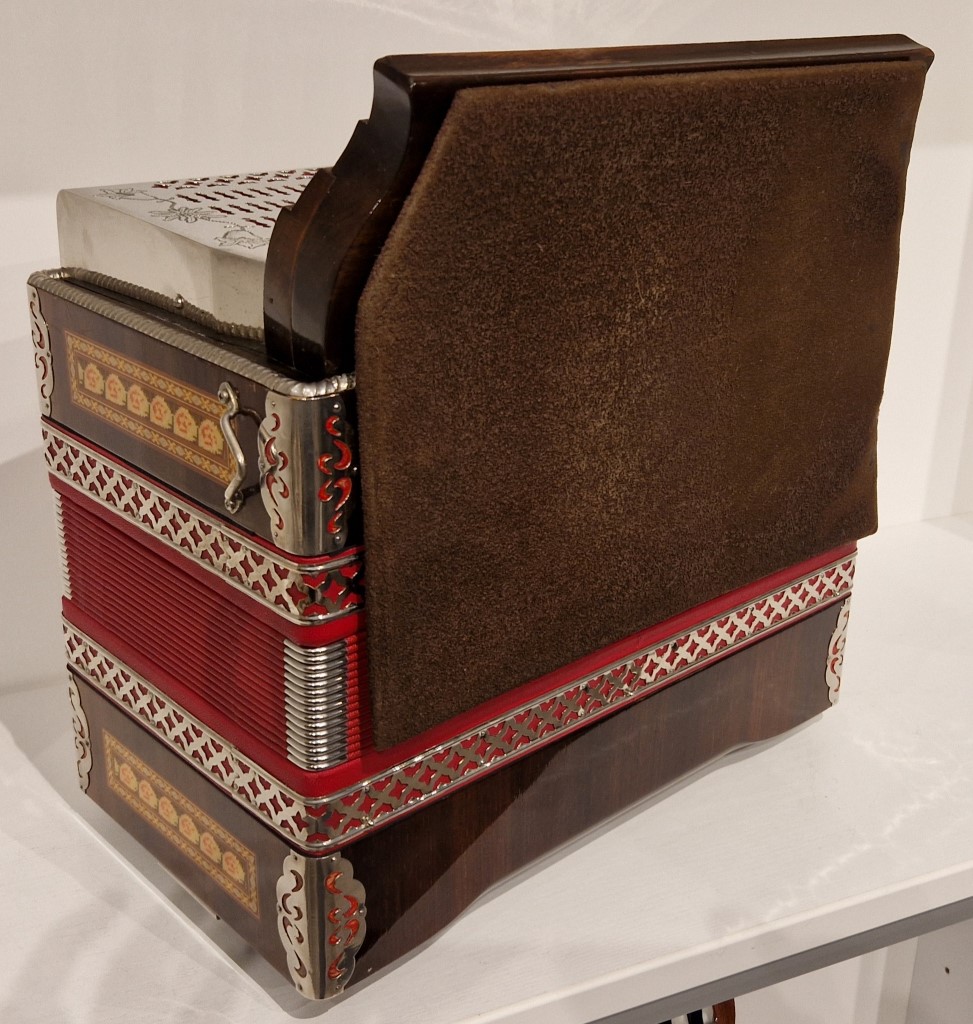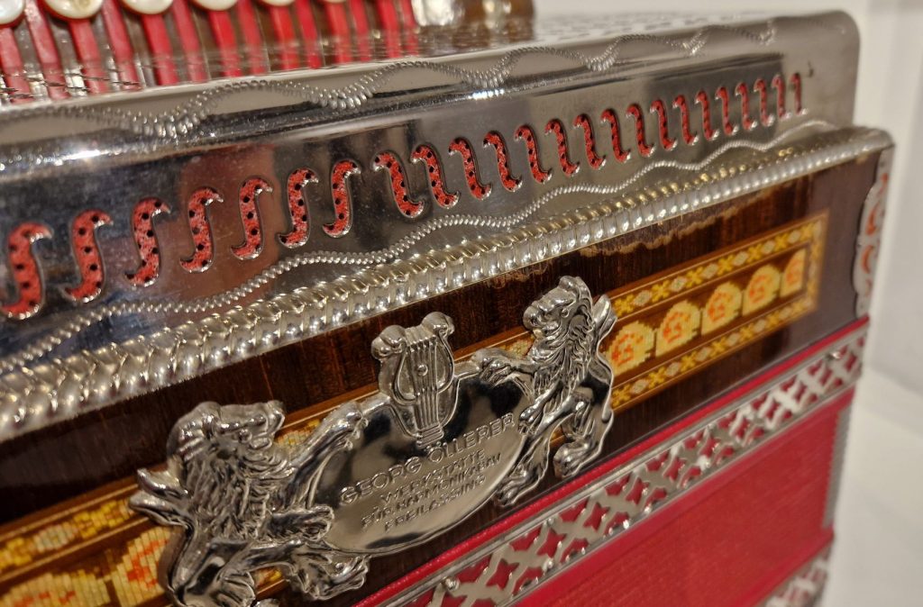Trotz der starken Gebrauchsspuren am Klarlack der Diskantseite ist die Harmonika mechanisch in einem guten Zustand.